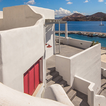 A steep slope can be an advantage A small complex of a residence with two guests-studios built on a really steep slope overlooking the port of Pandèli and the open sea, as well as other islands around.
