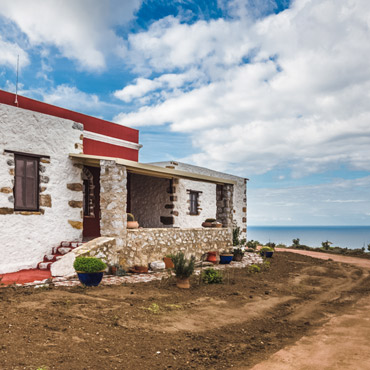 A complex of two stone build houses It’s a stone built residence and a guest-house. Built on the top of a hill overlooking two bays with a breathtaking view of the sea, the small green valleys around and a magnificent sunset.